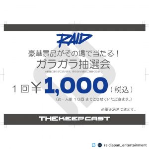 ”キープキャスト2026”RAIDJAPANブースでは、毎回ご好評を頂いているガラガラ抽選会を開催致します。