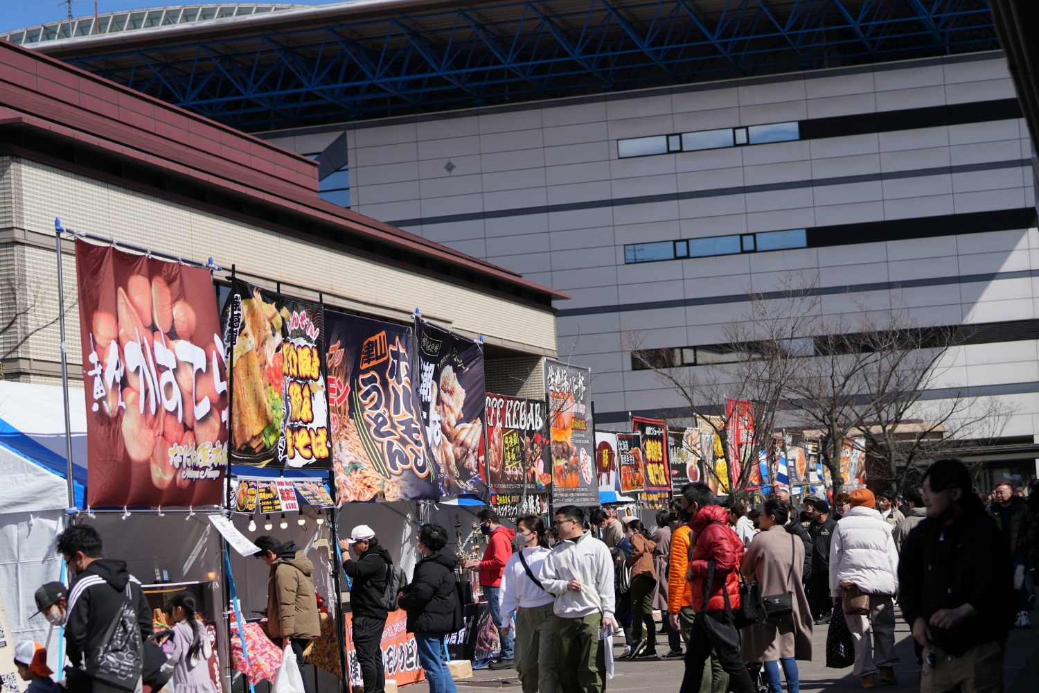 飲食ブースは入口を入って右手にすすみ屋外にブースが立ち並ぶ形となります。